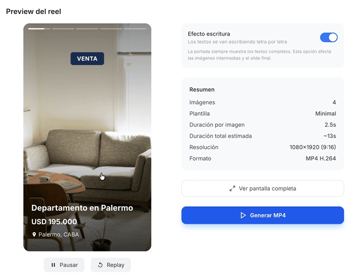 Convertí cualquier inmueble en Reels y posteos de alto impacto en segundos. Evitá pérdidas de tiempo con las apps de edición y empezá a generar leads para las propiedades desde tus redes sociales.